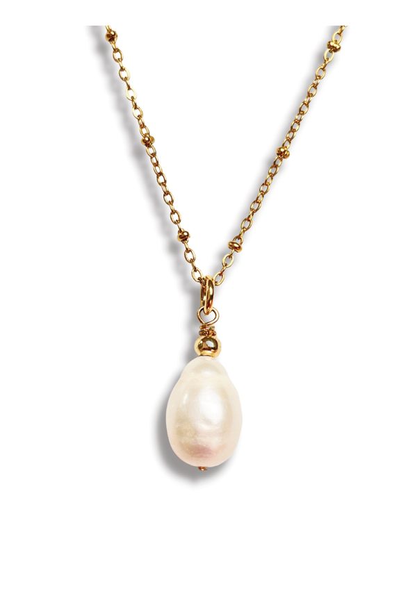 Every girl loves pearls and this necklace is simple yet bold. The dewdrop shaped featured pearl measures about 15mm x 10mm. The chain is plated in a long lasting gold and comes on a 52cm satellite chain with 5cm extender chain in case you’d like it a little longer. If you would like a shorter or longer chain, let me know..